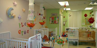 The classroom will be safe, fee from any harmful equipment or objects. Your baby will have his/her own individual crib and cubby.